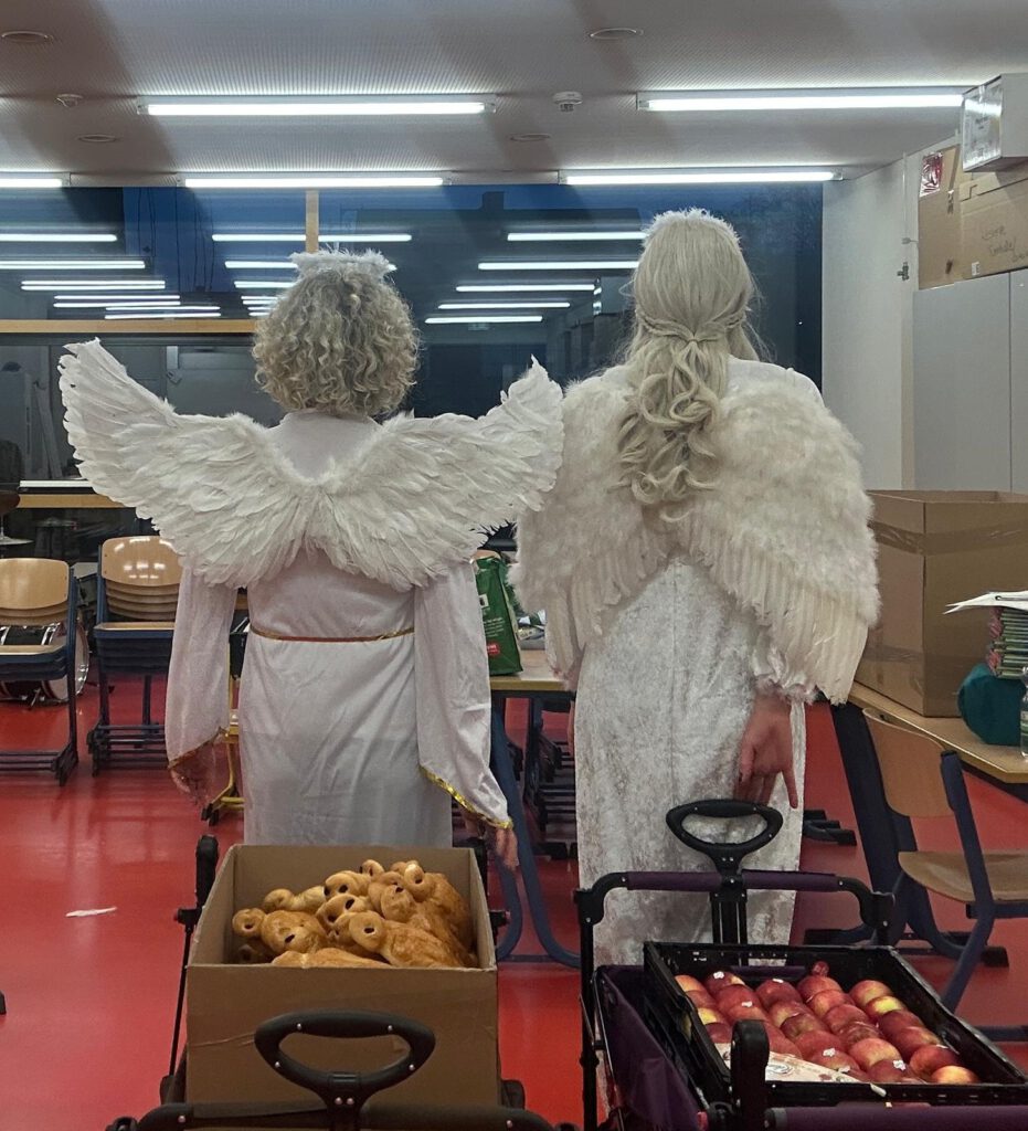 Pünktlich zu Nikolaus gab es für alle Schüler*innen Äpfel und Weckmänner direkt aus dem Engelskorb.
